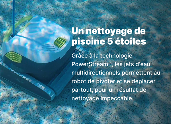• 5-star pool cleaning: Thanks to PowerStream technology. the multidirectional water jets allow the robot to pivot and move anywhere. for impeccable cleaning results.