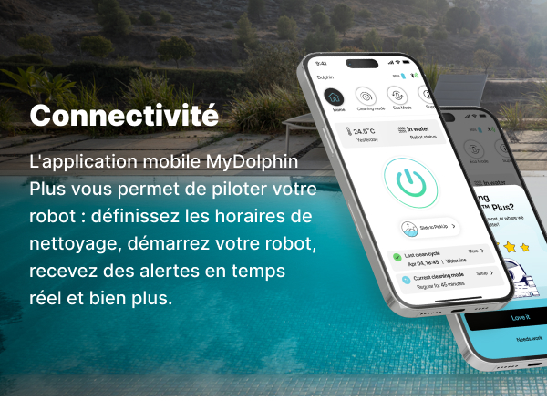 • Connectivity: The MyDolphin Plus mobile application allows you to control your robot: set cleaning schedules. start your robot. receive real-time alerts and much more.