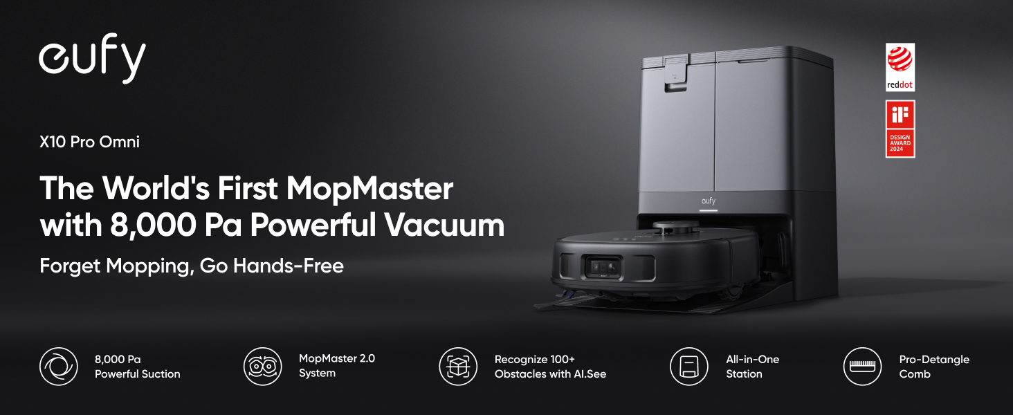 eufy X10 Pro Omni Robot Vacuum Cleaner with Mop, All-in-One Station, 8,000Pa Powerful Suction, Dual Mops, AI Obstacle Avoidance, Auto Mop Washing, Auto-Hot-Air-Drying, Auto-Emptying, Auto-Refilling