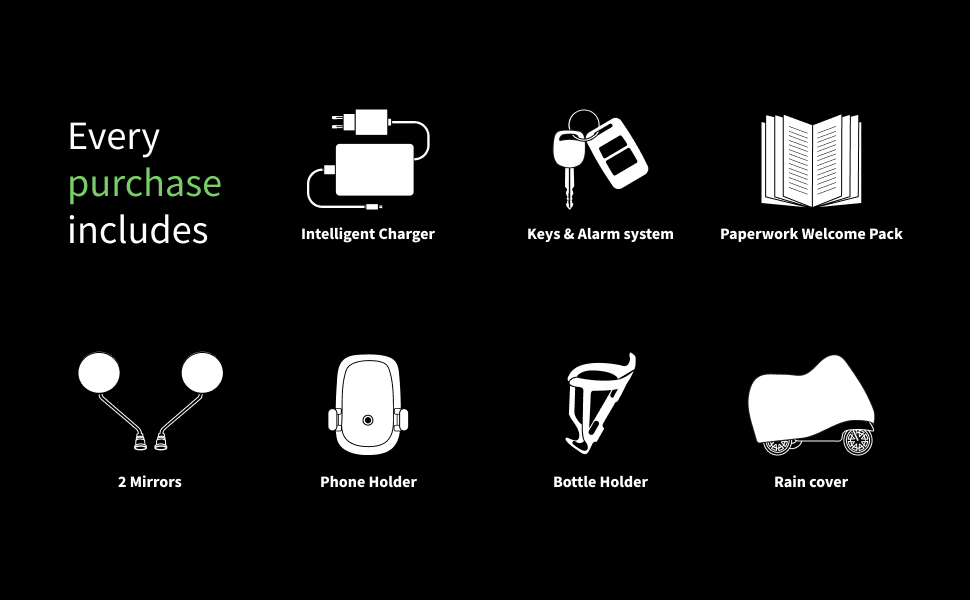 - Special Gift - Accessories Package: Mobility Scooter Waterproof cover. Phone holder. Bottle holder. We want to make sure you have all you need to get started.