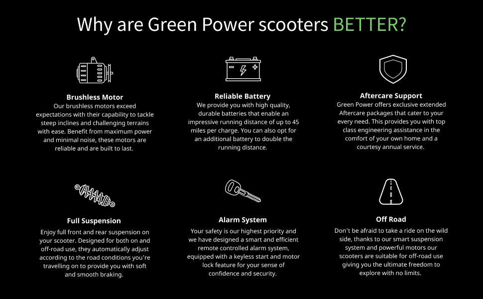 Discover the technology that will change your life - Here at Green Power. we are truly joyful and blessed at the same time. Why. may you ask? That’s because we have been able to help countless people lead a more productive. happy and confident life. something that has always been both our mission and the source of our motivation. We are thrilled to restore as much mobility as possible to those who have been deprived of it. In fact. our innovative Electric Mobility Scooter will render you able to scoot around the neighborhood. your town. the park or anywhere else for that matter. without giving it a second thought!