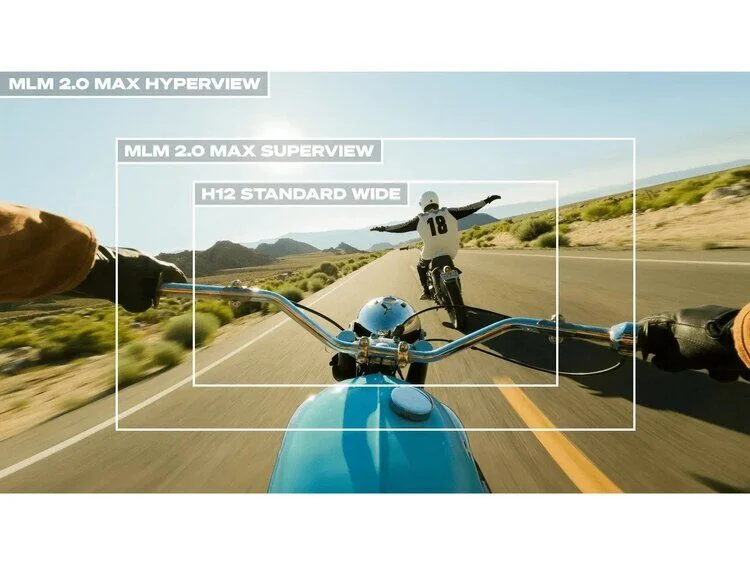 HyperView and SuperView—both GoPro exclusive digital lenses—enable ultra wide 16:9 capture. standard in HERO12 Black. For even wider shots. consider the new Max Lens Mod 2.0 accessory (see above).