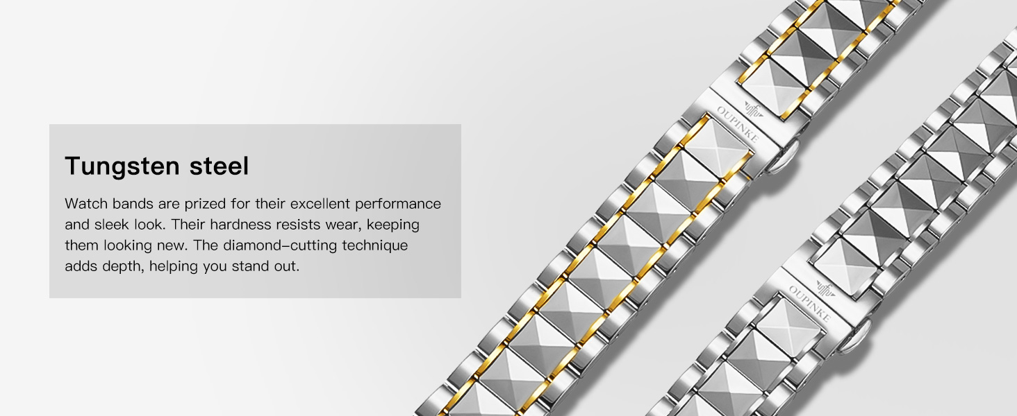 ⌚【Gold Watches for Men】: Gold tungsten band stronger and more durable than stainless steel, original design diamond structure. The band can be added or subtracted according to the size of the wrist through the gift adjuster, which is more suitable for the wrist.