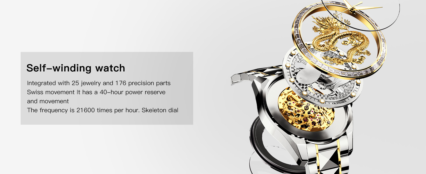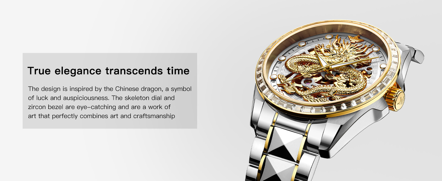 ⌚【Dragon Skeleton Watches for Men】: Three-dimensional manually carved for gold dragon watches for men, more outstanding visual effect. Precision processing technology, more delicate and smoother touch, to meet men's high-quality pursuit of luxury dress watches.
