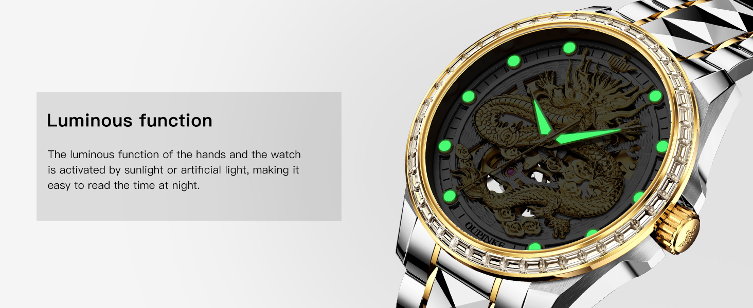 • OUPINKE Dragon Skeleton Mens Wrist Watches Luxury Dress Automatic Self Winding Mechanical Sapphire Crystal Diamond Waterproof Luminous Tungsten Steel Band Watches