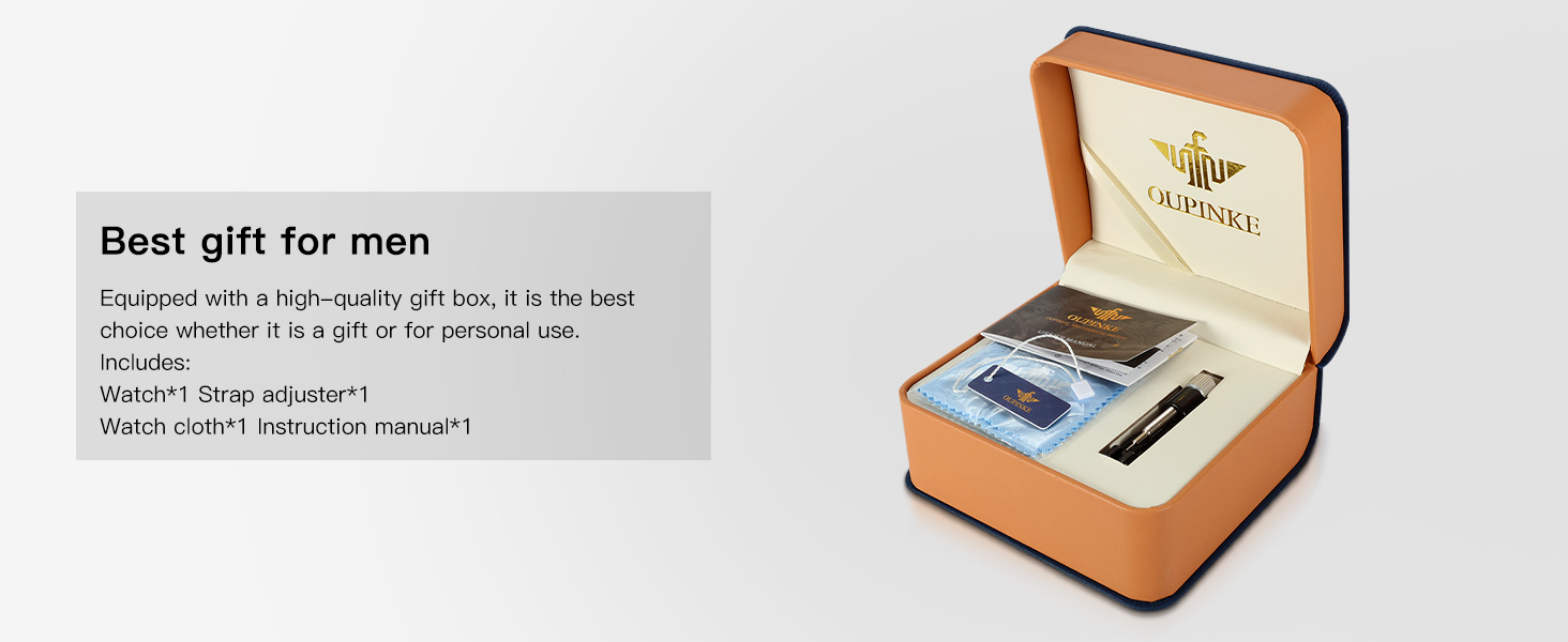 ⌚【Best Gift for Men】: OUPINKE Watches for Men equipped with exquisite gift box and adjustable band tools, it can be given as a grand surprise gift to your teacher, husband, boyfriend, father, grandfather, good friends, family or yourself on Teacher's Day, Valentine's Day, Father's Day, Thanksgiving, Christmas, New Year and birthday. If you have any problems with man watch, please feel free to contact us via email and we will provide you with professional after-sales service.