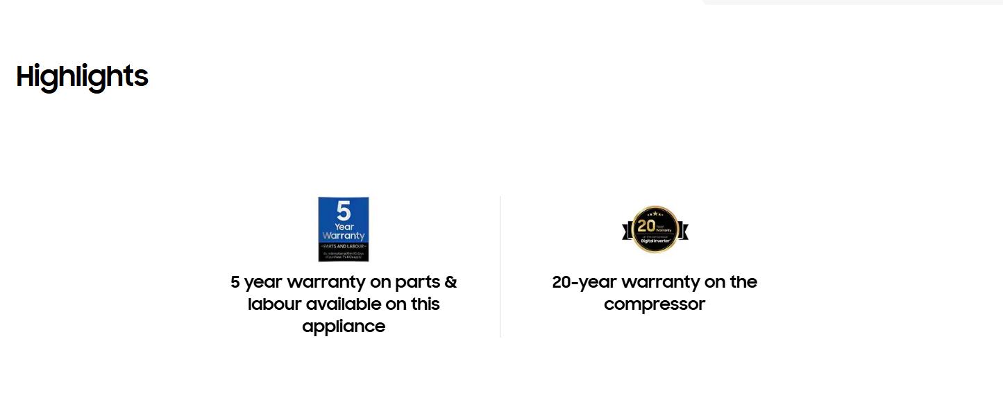 Keep food consistently cool and save energy. The new high-efficiency Al inverter Compressor's improved structureincreases the radius of the rotating parts. lts increased inertia, which is 4.1x higher than a Samsung conventionalcompressor*, means it can operate for onger usina ess enerav, Usina an Al algorithm, it also adiusts the speed otthe compressor to suit the user's usage patterns and save energy**, The compressor's durability is also backed-upby a 20 year warranty.