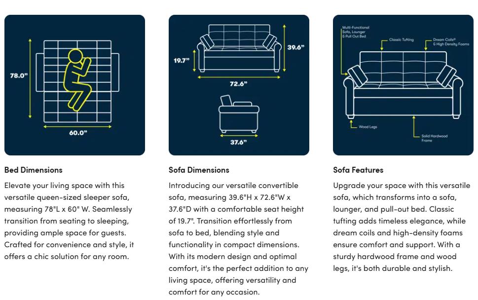 • Easy conversion: seamlessly switch between sofa and bed modes with a user-friendly, intuitive mechanism. Transform your space to accommodate overnight guests or simply enjoy a comfortable lounging experience.