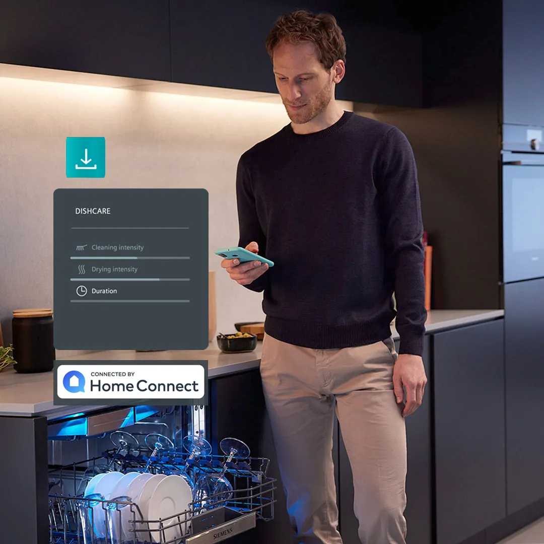 Selecting the right dishwashing programme can be pure guesswork. Save time by letting your dishwasher select the right settings and speed up the cycle when needed. Simply tell your dishwasher how satisfied you are with the programme duration and the cleaning and drying results via the Home Connect app. The dishwasher will adjust its settings to create a customised programme, along with an overview of water and energy consumption. Enjoy having more time for the things that matter.