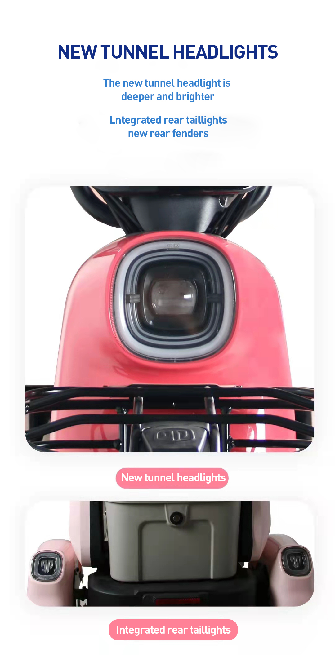 The V3 electric leisure tricycle boasts a fashionable exterior with a new tunnel lighting system that is brighter and more efficient. The integrated rear tail lights and the newly designed rear fender add to the tricycle's overall modern and attractive appearance.